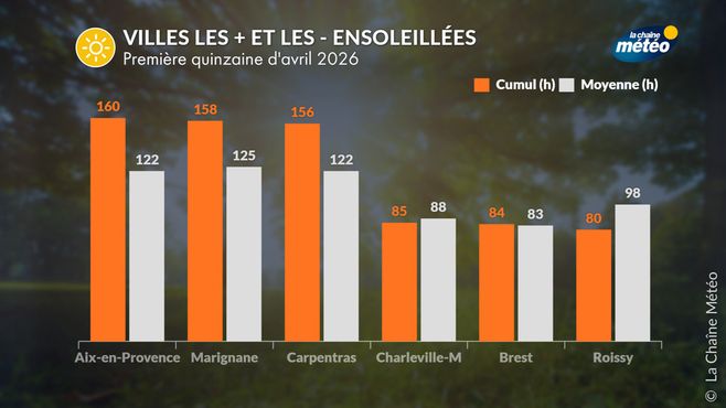 La pluviométrie de cette première quinzaine d'avril est largement déficitaire de -45%. Certaines villes du nord comme Le Mans, Dieppe, Beauvais, Lille et Reims ont reçu moins de 5 mm de pluie. Il a également très peu plu en région PACA avec 1 mm à Toulon et Marignane et seulement quelques traces de pluie à Nice aéroport.