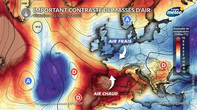 Ce face-à-face crée une zone de contraste thermique très nette, typique des périodes de transition printanières.