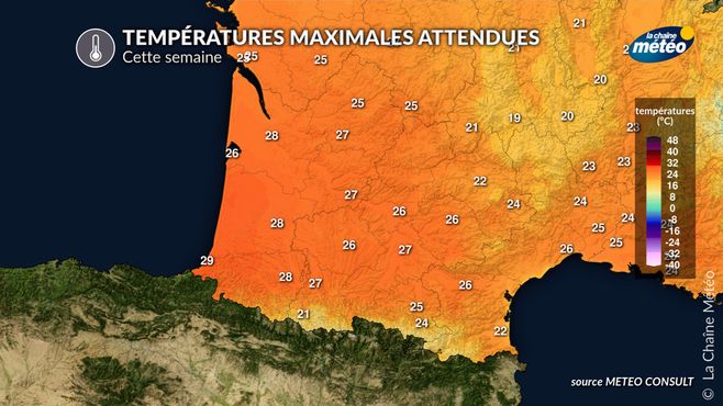 Températures maximales attendues cette semaine © Meteo Consult / La Chaine Météo