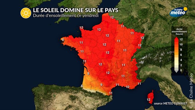 Durée d'ensoleillement ce vendredi © La Chaine Météo / Météo Consult