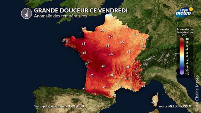 Anomalie des températures ce vendredi © La Chaine Météo / Météo Consult