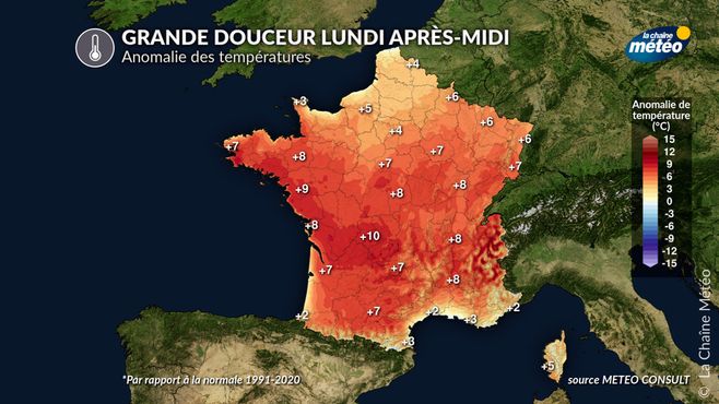 Grâce à un ensoleillement généreux, les températures affichent de nouveau un niveau de mi-juin avec 23 à 26°C l'après-midi du nord au sud. Elles augmentent d'1 à 2°C par rapport à dimanche en raison de l'affaiblissement du vent et d'un meilleur ensoleillement.