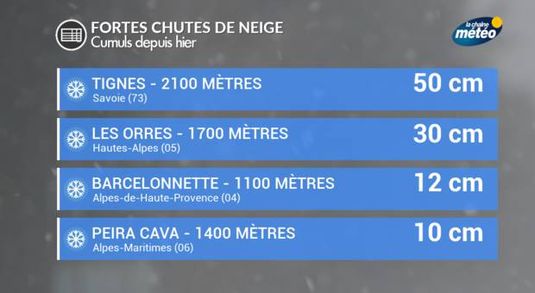 Entre vendredi et dimanche matin, il a beaucoup neigé en montagne, notamment sur les Pyrénées et les Alpes. La couche atteint localement 50 cm vers 2000 ...