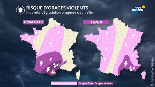 Nouvelle dégradation orageuse : risque d’orages violents dans le sud entre dimanche soir et lundi matin