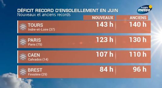 Le soleil a brillé par son absence en ce mois de juin 2015. De nombreuses villes du nord de la France ont enregistré des déficits d’ensoleillement record. ...