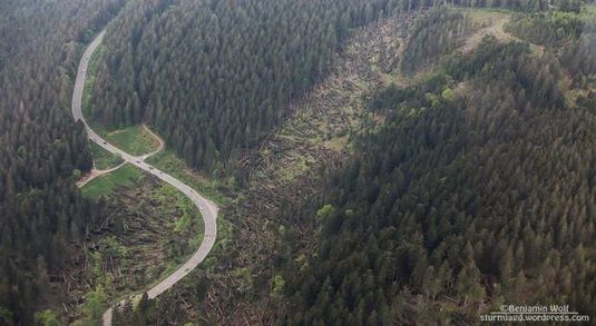 Des photos aériennes dévoilent le sillage laissé par une tornade sur la montagne de Feldberg en Allemagne il y a quelques jours. ...