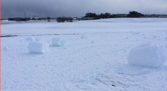 Etonnants rouleaux de neige au Danemark
