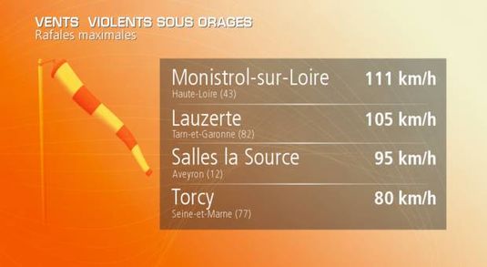 Violents orages et rafales à 110 km/h ce weekend