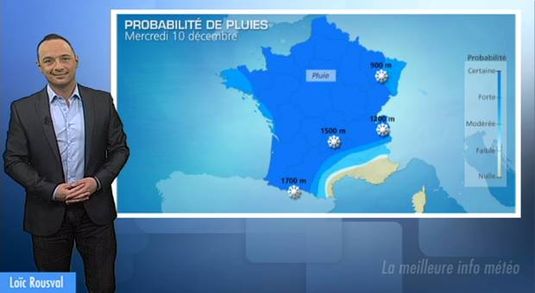 Ce mercredi 10 décembre, une nouvelle perturbation traversera la France du nord-ouest vers le sud-est, la pluie concernera 90% du territoire à un moment ou à ...