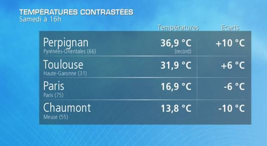 Samedi après-midi : de 13 à 37°C du nord au sud