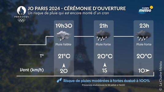 Jeux olympiques - Paris 2024 : risque important de pluie modérée à forte pour la cérémonie d'ouverture
