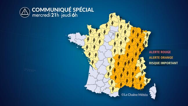 En milieu de nuit de ce mercredi à jeudi, la situation météo s'annonce critique et nécessite la plus grande prudence, notamment d'éviter de se déplacer entre 23 h et 03 du matin. Pendant cette période, il existe une probabilité estimée de 10 à 30% par nos Services de passer en alerte de niveau rouge pour des inondations locales en basse vallée du Rhône (sur le triangle Gard, Ardèche, Vaucluse et la Drôme). En effet, des orages très violents circulent à ce moment entre le Languedoc et la région PACA, en direction des Alpes-de-Haute-Provence. Les pluies sont très intenses, mais circulent assez rapidement vers l’est et finissent par s’évacuer par les frontières de l’est et du sud-est en milieu de nuit. Il n'y aura pas l'aspect stationnaire de ces dernières 48 heures.
