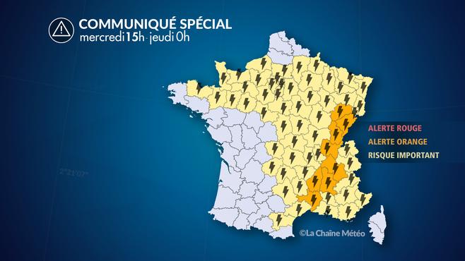 Le temps reste très instable sur la France avec le développement de nombreux orages diffus et peu mobiles jusqu'à ce mercredi soir. Dans ce contexte, les orages les plus forts éclateront du Languedoc à la Franche-Comté en passant par le couloir rhodanien ce mercredi.