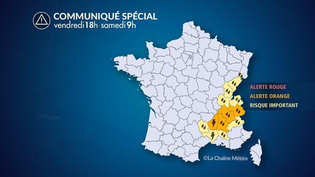 Un épisode pluvio orageux marqué est en place jusqu'à samedi matin des Cévennes au centre-est en passant par la moyenne vallée du Rhône. Cette situation s'explique par la remontée d'air chaud et humide généré par une vaste dépression qui tourne sur l'océan Atlantique. Dans ce flux, des pluies orageuses viennent alors se bloquer des Cévennes au Jura en étant abondantes sur les reliefs cévenols. On parle alors d'épisode cévenol.