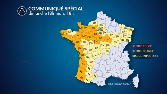 Dans la nuit de dimanche à lundi, une première dépression, nommée Gérard, traverse le nord du pays. Creusée à 980 hPa près de son centre, cette profonde dépression provoque un coup de vent de la façade atlantique au nord du pays, avec des rafales proches de 120 km/h en bord de mer et 90 à 100 km/h dans les terres. Les rafales les plus fortes seront observées au passage de puissantes lignes de grains orageux, parfois accompagnés de grésil, voire de neige lundi matin jusqu'en plaine. Par ailleurs, on redoute des inondations car les précipitations s'abattront en l'espace de quelques heures sur des sols déjà saturés d'humidité.