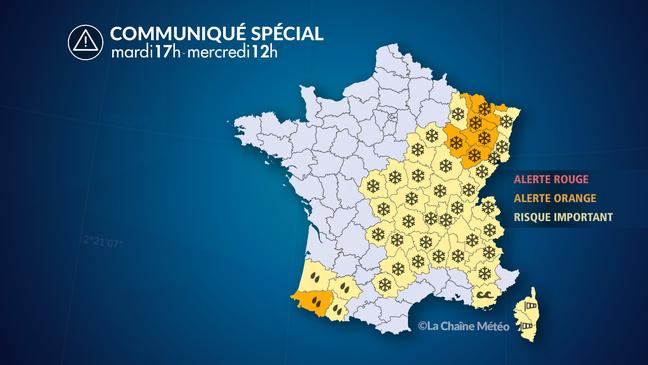Avant cela, les chutes de neige vont continuer de circuler sur les deux tiers nord du pays jusqu’à mercredi 12h, à l’exception du bassin parisien et des Hauts-de-France. Avec la baisse des températures, la neige au sol engendrera de fréquentes formations de verglas.