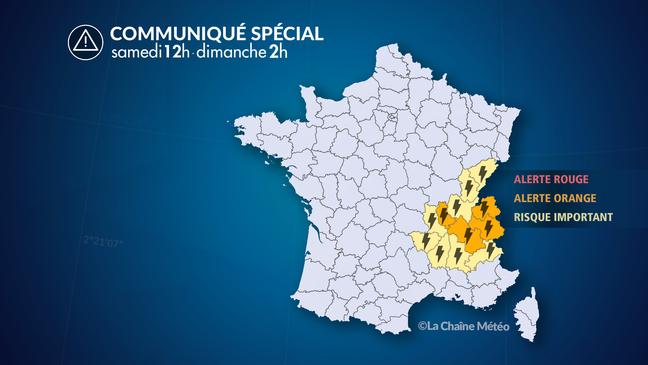 Une nouvelle dégradation orageuse, habituelle en été, concerne les départements de l'est de l'Auvergne, de la moyenne vallée du Rhône, des Alpes du nord et des monts du Jura entre cet après-midi et la nuit de samedi à dimanche.