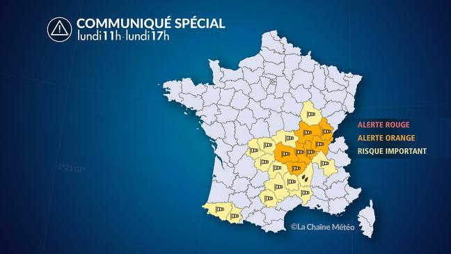 En lien avec la tempête Bert qui traverse les îles britanniques, le vent souffle fort jusqu'à ce lundi en fin d'après-midi. La montagne pyrénéenne, le pays basque, le Massif central, mais aussi le val de Saône, la région lyonnaise et l'Isère subissent des vents forts. Les rafales peuvent ponctuellement atteindre 110 km/h, jusqu'à 130 km/h en montagne. Le Lyonnais est également très exposé à des rafales proches de 110 km/h de vent du sud.