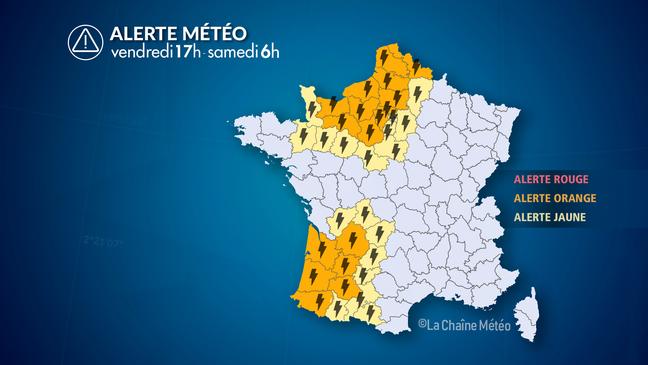 Ces orages s'annoncent violents entre la Normandie et l'ouest des Hauts-de-France ainsi qu'en Aquitaine.