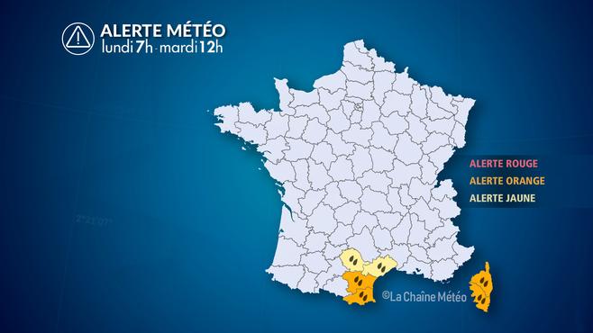 Un épisode méditerranéen frappe le sud-est de la France jusqu'à mardi matin : le Languedoc-Roussillon et l'est de la Corse sont ...