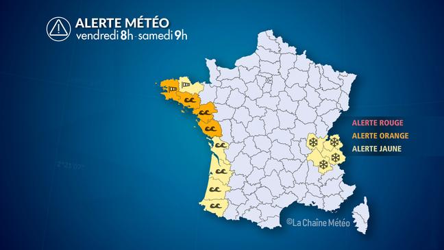 Un épisode de neige lourde et collante se met en place sce soir entre les monts du Jura et les Alpes. La neige prend graduellement le relais de la pluie dès 500 à 700 m d'altitude pendant la nuit. Prudence sur le réseau d'altitude. L'épisode cesse rapidement entre 07h et 09 h ce samedi matin. On attend 5 à 10 cm en général dès 600 à 700 m.