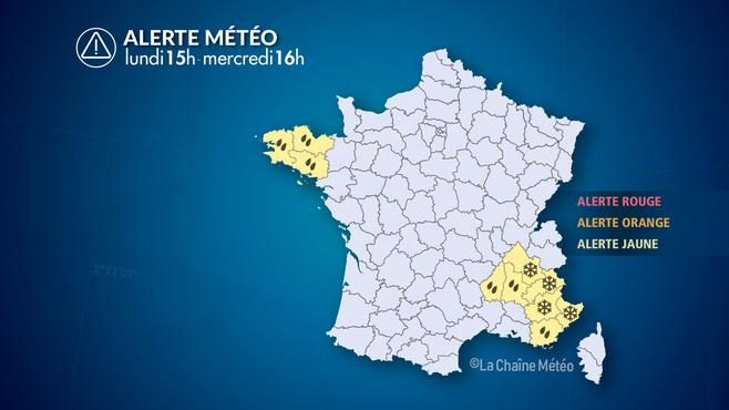 - Épisode pluvio-neigeux au sud-est : de mardi 12 H à mercredi 17 H