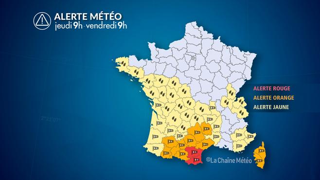 Les pluies restent soutenues du Jura aux Alpes (limite pluie-neige s'abaissant vers 1200 m ce jeudi). Attention au risque d'avalanches qui atteint le niveau maximal de 5 sur 5 sur les massifs de la Savoie. Dans l’ouest et le sud-ouest, les précipitations sont parfois intenses avec un risque important d’inondations. De nombreux cours d’eau des bassins Loire-Bretagne et Adour-Garonne sont placés en vigilance orange crues. La Garonne girondine et la Garonne marmandaise sont désormais placées en ALERTE ROUGE par Vigicrues.
