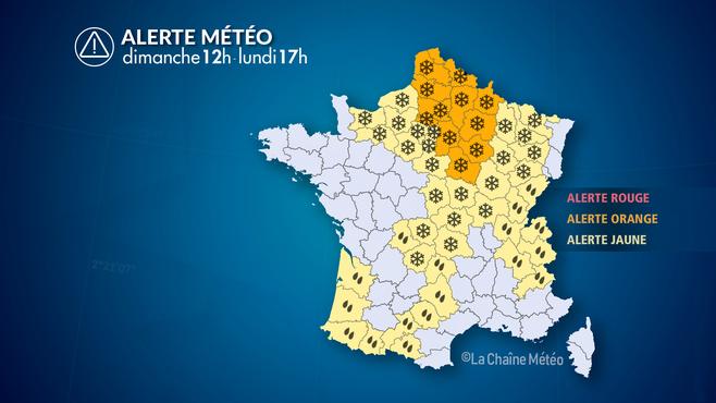 Il s'agit d'une neige de redoux. Mais pendant 1 à 3 heures, avant que le redoux ne gagne tout le pays en fin de journée, de la neige est attendue en plaine des Hauts-de-France à la Normandie au bassin parisien à la Champagne aux Ardennes jusqu'en Limousin et en Bourgogne et au nord de l'Auvergne.